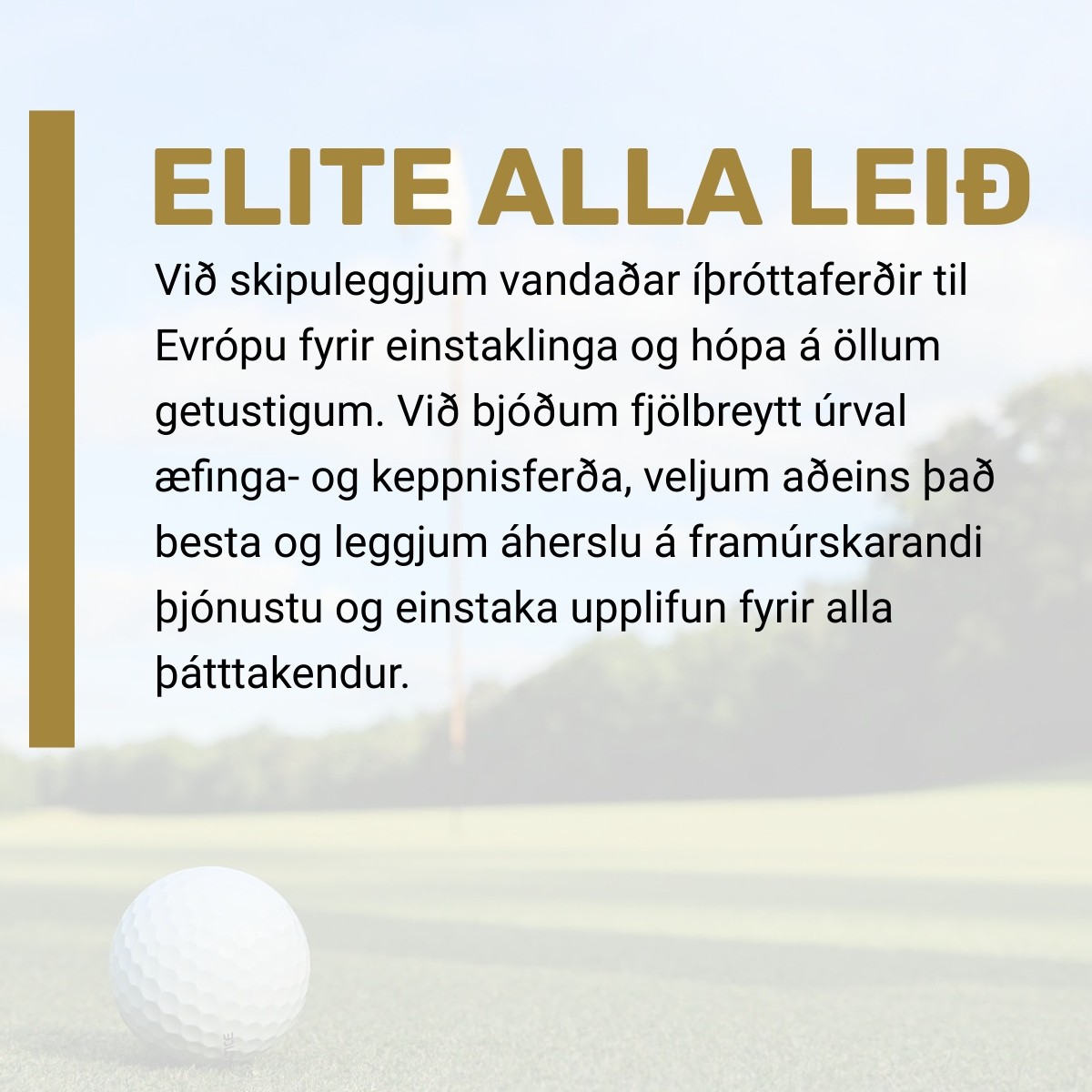 Hjá Elite Ferðum erum við með íslenska fararstjóra í öllum okkar ferðum og íslenska golfkennara í golfskólaferðum.
